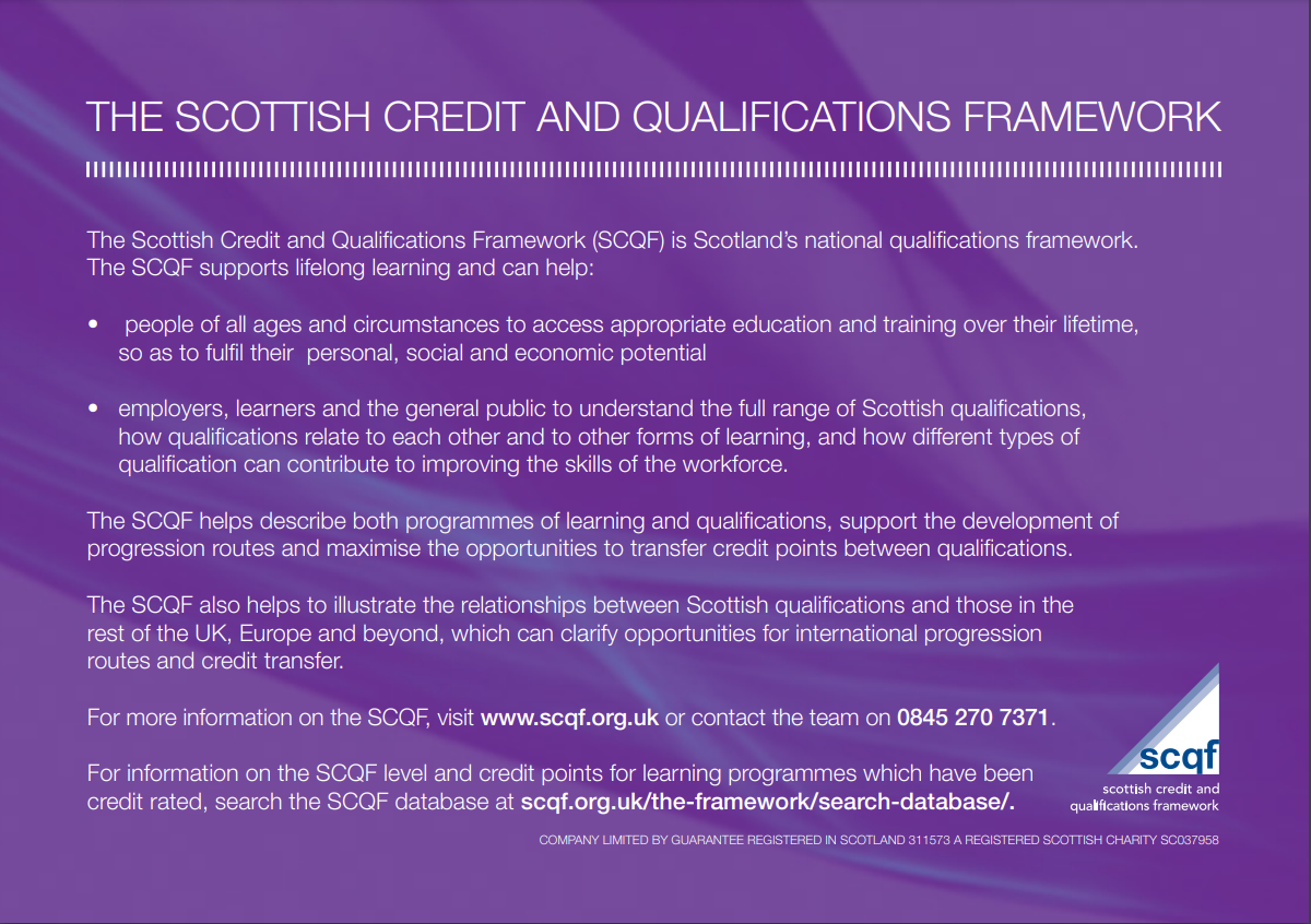 The Scottish Credits and Qualifications Framework (SCQF)